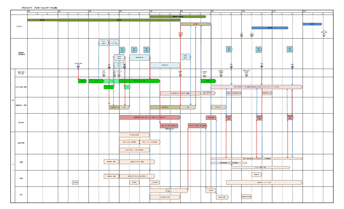 当社では作業にあたり、プロモーションテーブル(設計BIM工程)を作成の上、キックオフ会議を行い、目標設定と業務の役割を関係者と協議し、明確にしていきますので、わかりやすく進めていくことができます。
