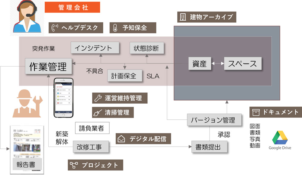 この開発がきっかけとなり、MainManagerのコアモジュールとなる 「建物アーカイブ」が開発されました。