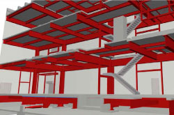 鉄骨専用ソフトを用いて、製作レベルの鉄骨モデルを作成します