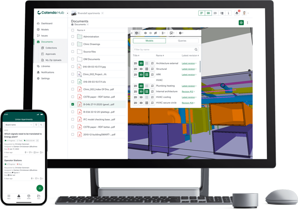 Catenda HubはオープンBIMに準拠した、オープンデータストックCDEです。BCFフォーマットを取り扱え、IFCを取り込むことにより、ユーザーは3Dモデルを簡単にWebブラウザ上で確認することができます。