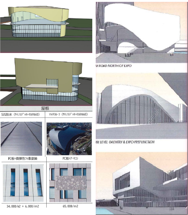 - パースを元にイメージモデルを作成し、面積の集計・外壁使用などの検討